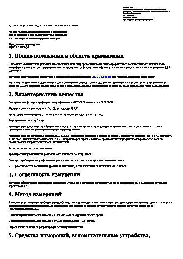 • Просмотр в полноэкранном режиме - легко просмотреть документ Метод газохроматографического измерения концентраций трифторметансульфокислоты и ее ангидрида в атмосферном воздухе (без загрузки его на свой компьютер).