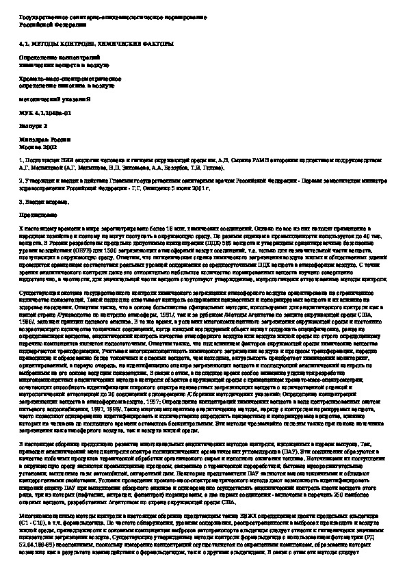Обозначение: МУК 4.1.1048а-01