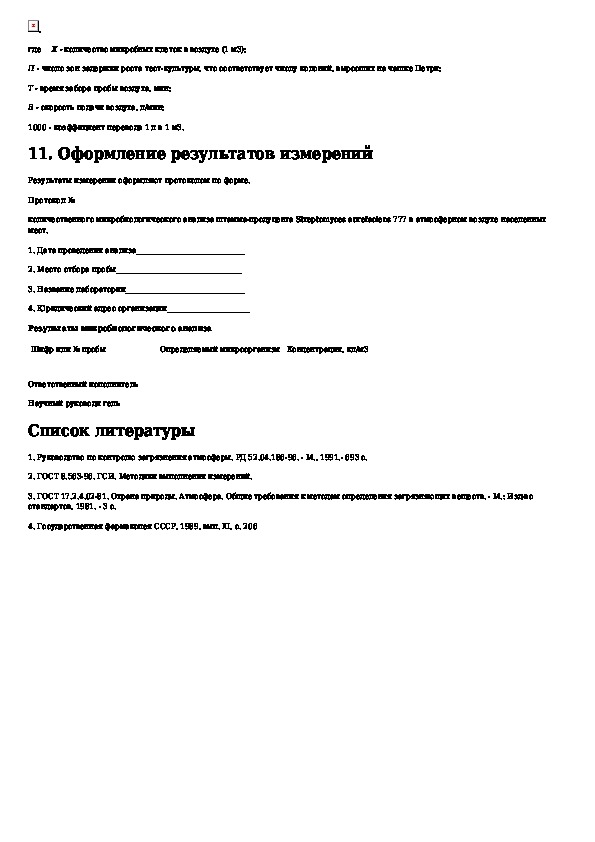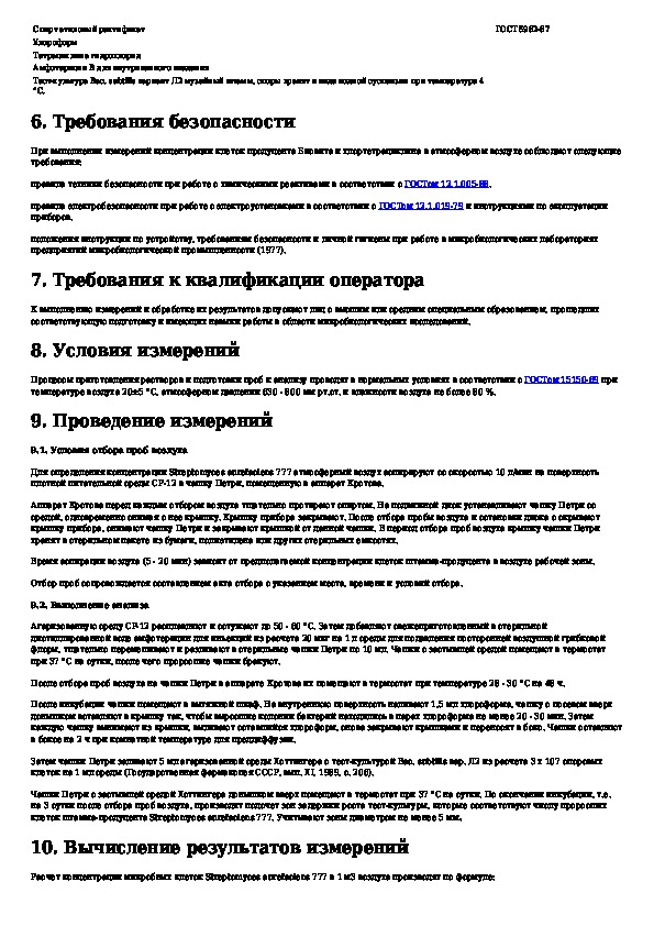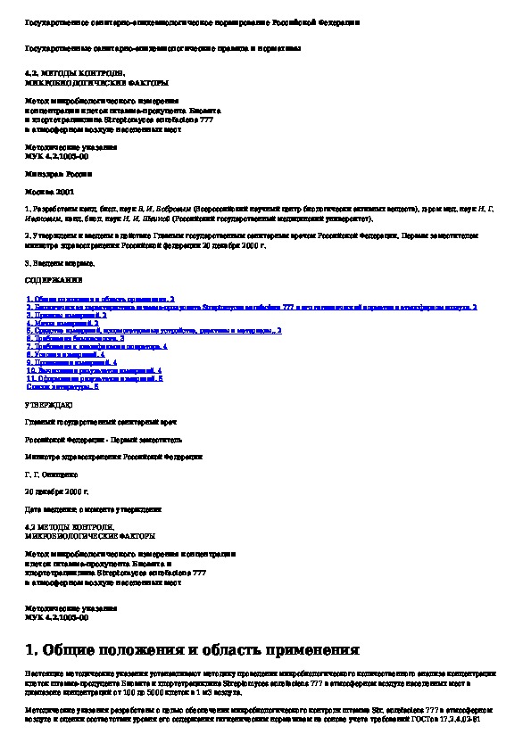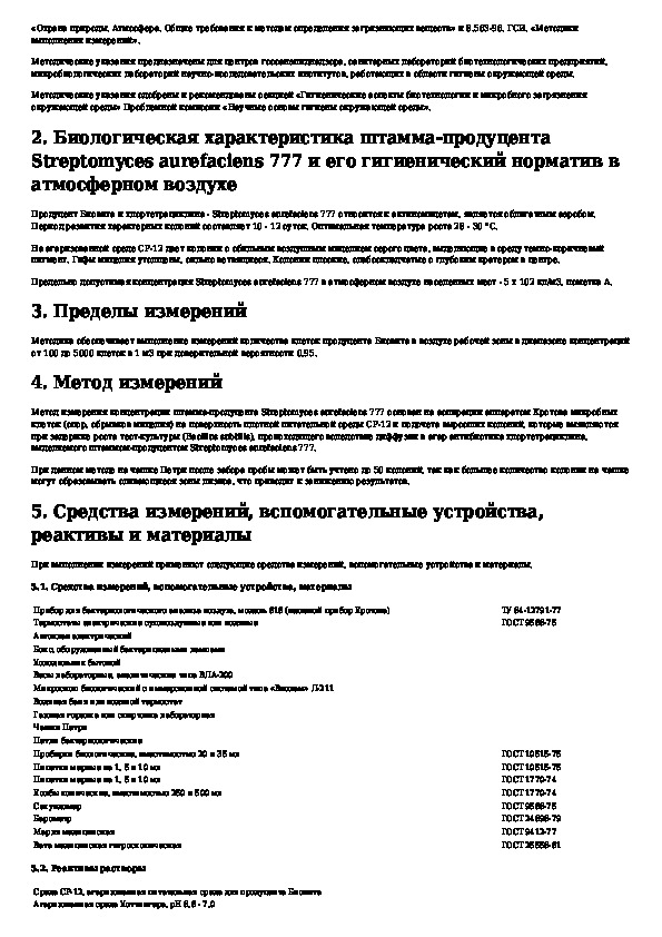 МУК 4.2.1005-00: Метод микробиологического измерения концентрации клеток штамма-продуцента Биовита и хлортетрациклина Streptomyces aurefaciens 777 в атмосфер