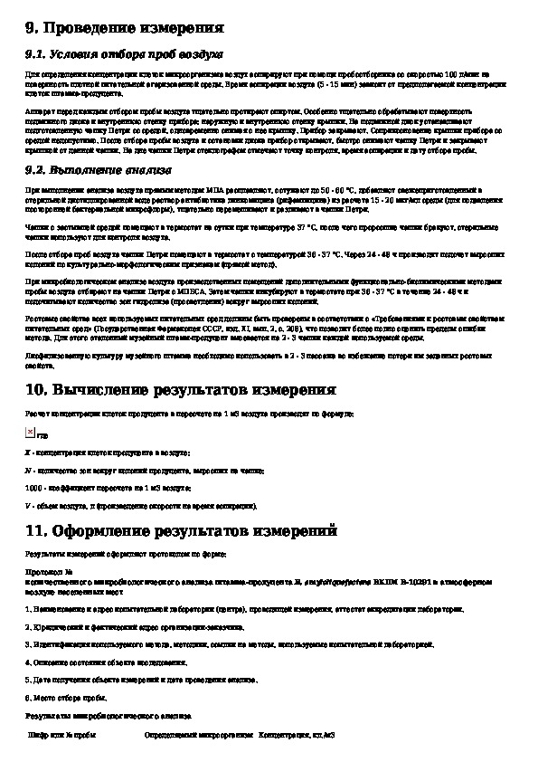 МУК 4.2.2721-10: Метод микробиологического измерения концентрации клеток B. amyloliquefaciens ВКПМ В-10294 - продуцента альфа-амилазы в атмосферном воздухе на