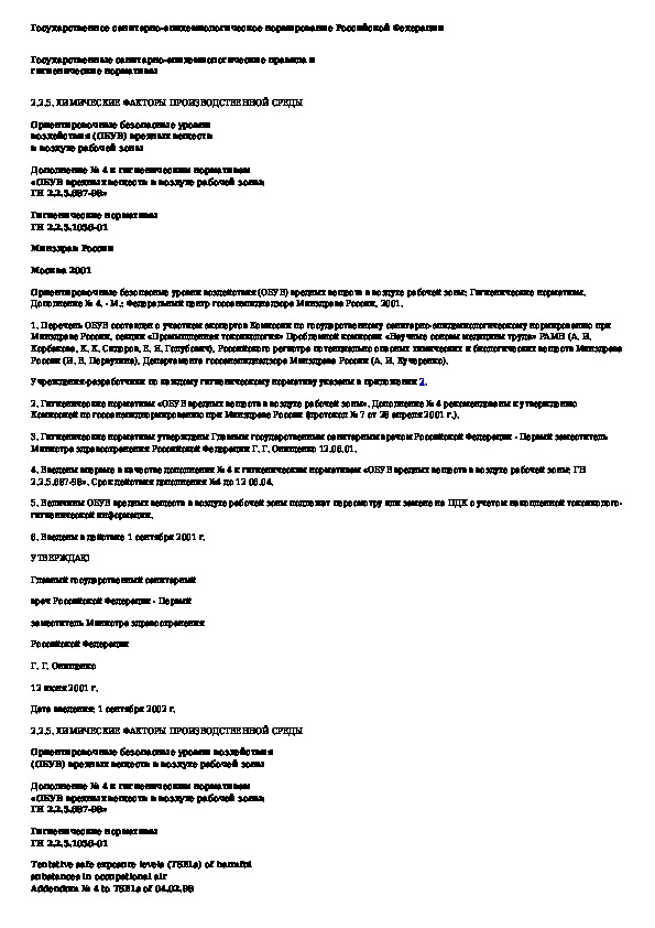Наша цель состоит в том, чтобы предоставить вам быстрый доступ к содержанию документа Ориентировочные безопасные уровни воздействия (ОБУВ) вредных веществ в воздухе рабочей зоны. Дополнение N 4 к гигиеническим нормат.
