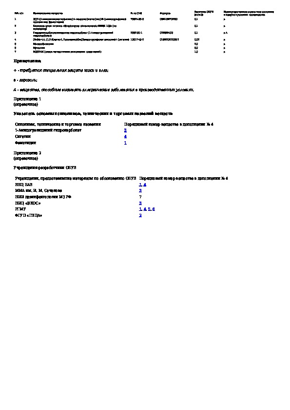Ориентировочные безопасные уровни воздействия (ОБУВ) вредных веществ в воздухе рабочей зоны. Дополнение N 4 к гигиеническим нормат