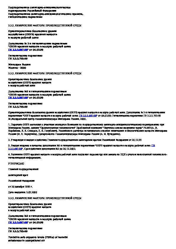 Наша цель состоит в том, чтобы предоставить вам быстрый доступ к содержанию документа Ориентировочные безопасные уровни воздействия (ОБУВ) вредных веществ в воздухе рабочей зоны. Дополнение N 2 к гигиеническим нормат.