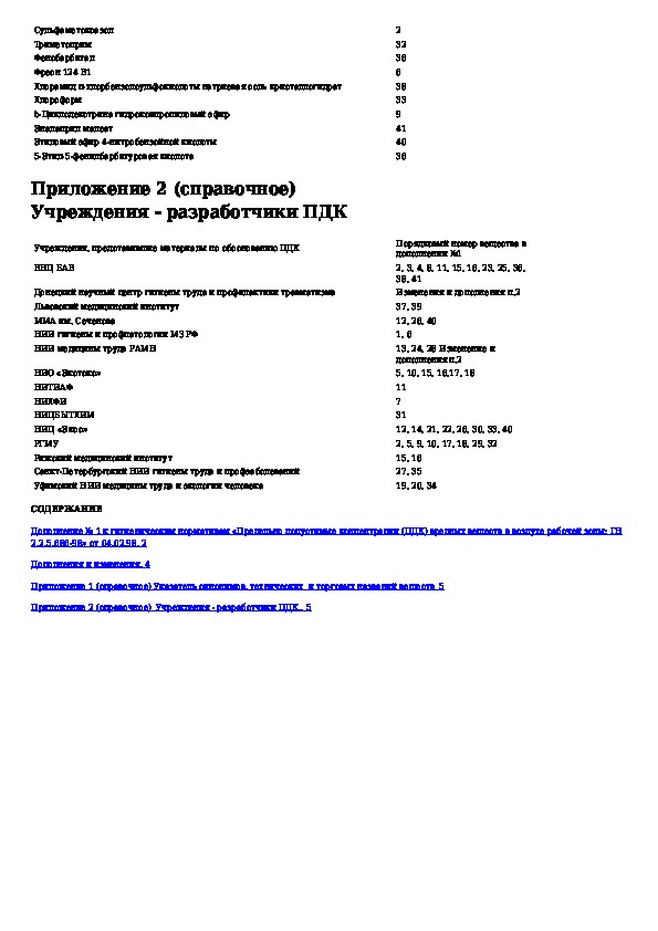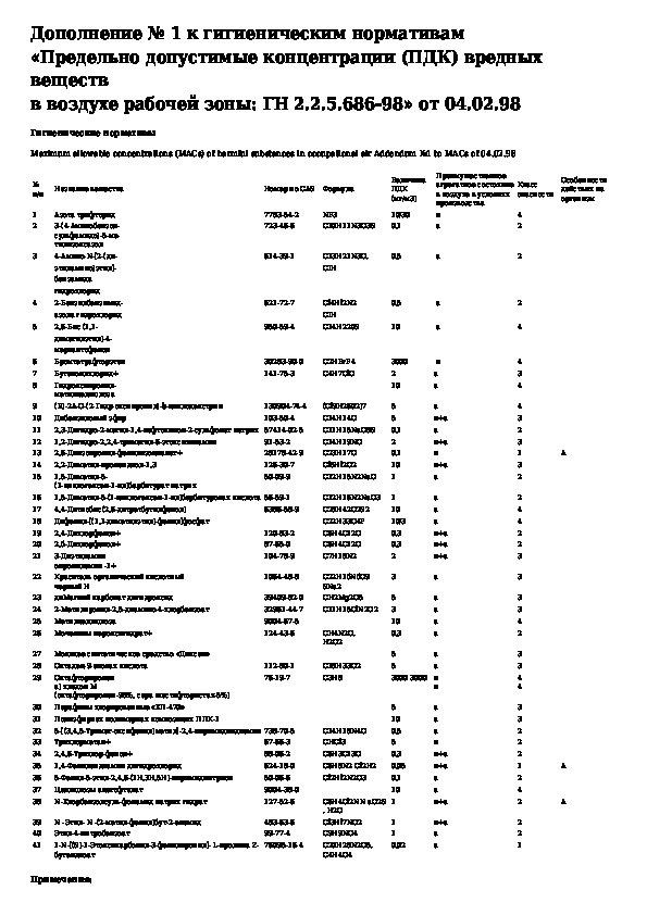 • Загрузка на компьютер - Вы можете также скачать Предельно допустимые концентрации (ПДК) вредных веществ в воздухе рабочей зоны. Дополнение N 1 к гигиеническим нормативам "ПДК вред на свой компьютер и сохранить его в файлах.