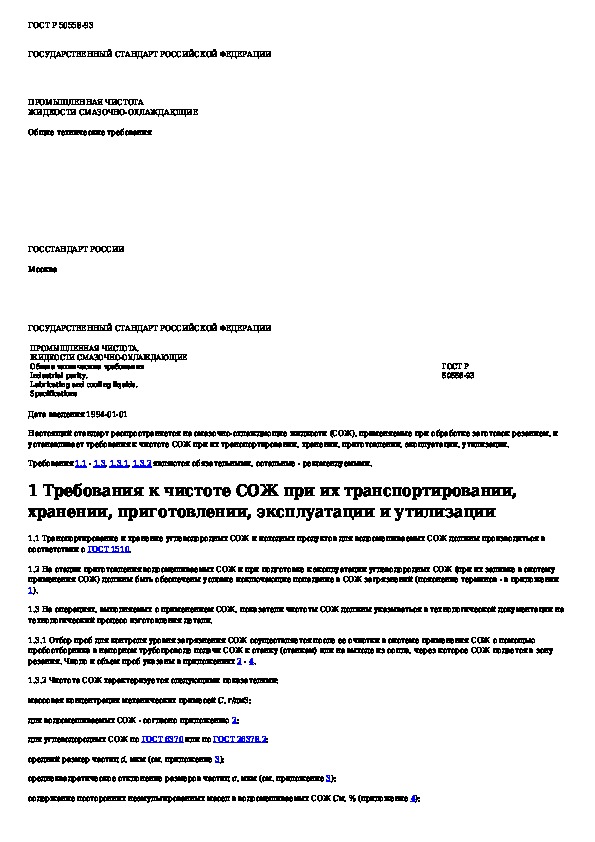 ГОСТ Р 50558-93: Промышленная чистота. Жидкости смазочно-охлаждающие. Общие технические требования