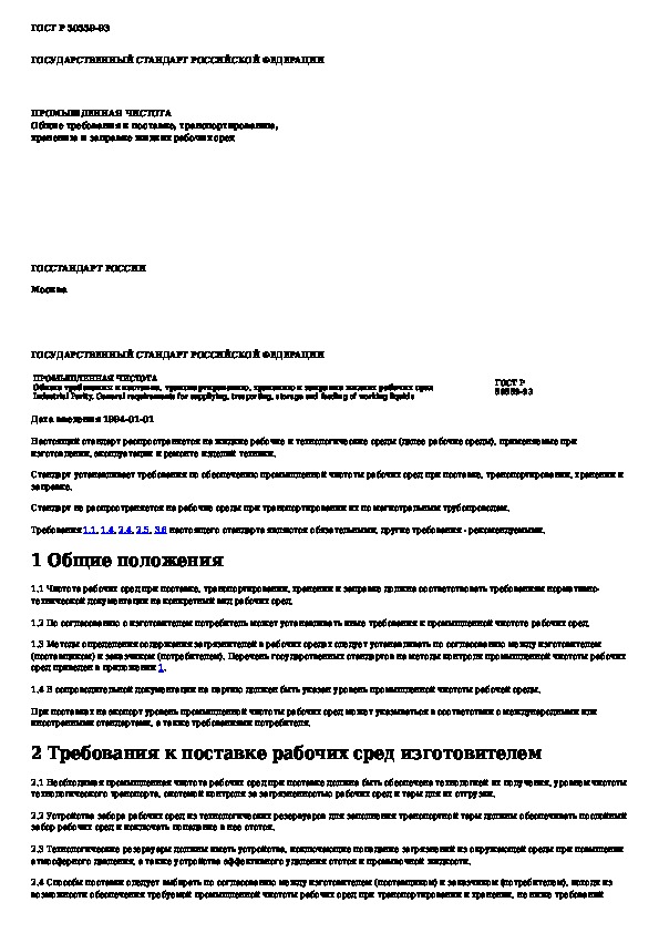 Наша цель состоит в том, чтобы предоставить вам быстрый доступ к содержанию документа Промышленная чистота. Общие требования к поставке, транспортированию, хранению и заправке жидких рабочих сред.