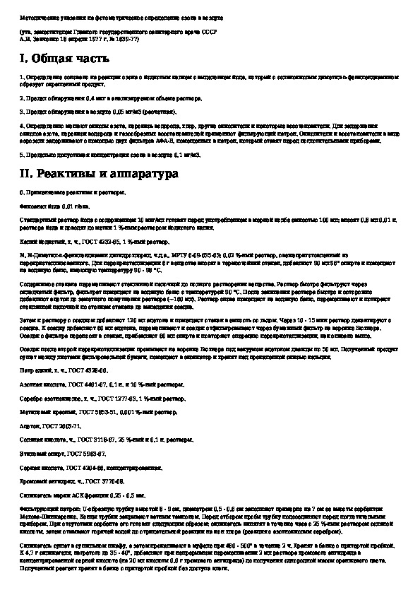 Методические указания на фотометрическое определение озона в воздухе