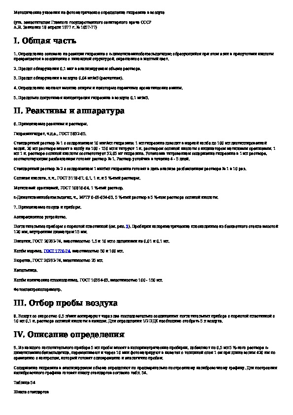 МУ 1657-77: Методические указания на фотометрическое определение гидразина в воздухе