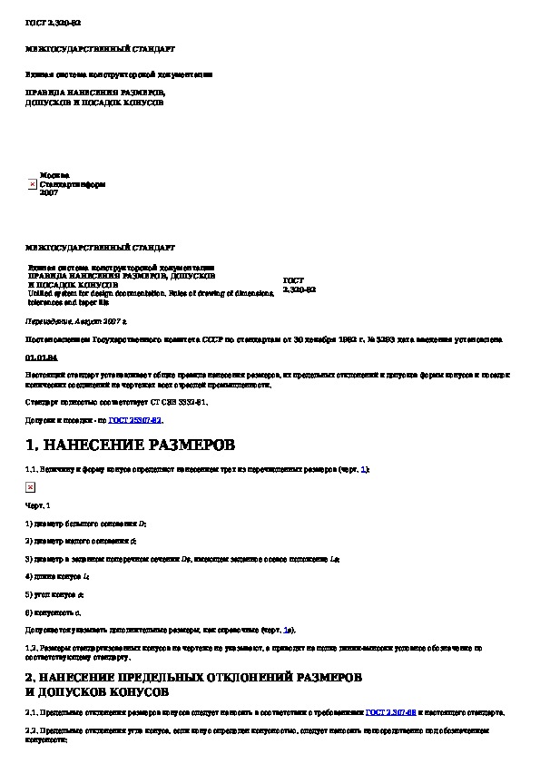 Наша цель состоит в том, чтобы предоставить вам быстрый доступ к содержанию документа Единая система конструкторской документации. Правила нанесения размеров, допусков и посадок конусов.