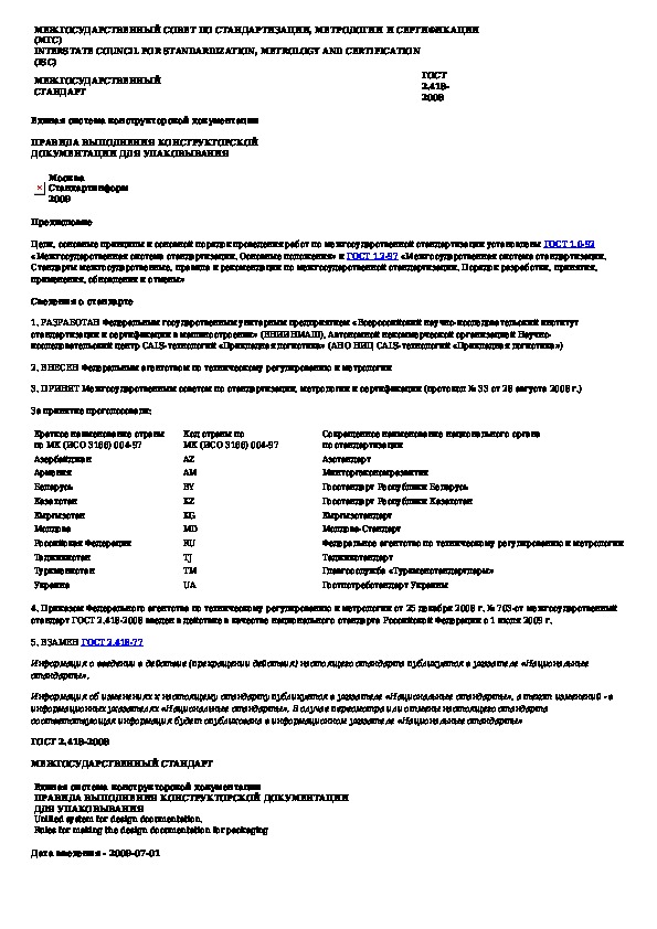 ГОСТ 2.418-2008: Единая система конструкторской документации. Правила выполнения конструкторской документации для упаковывания