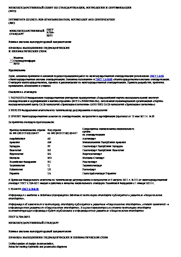 ГОСТ 2.704-2011: Единая система конструкторской документации. Правила выполнения гидравлических и пневматических схем