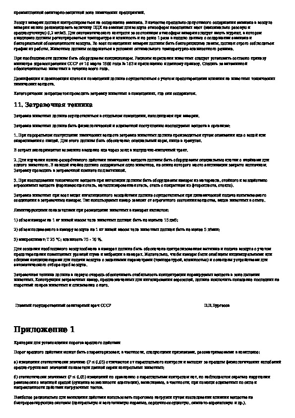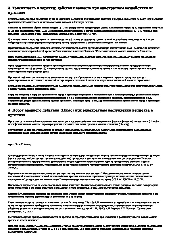 Методические указания к постановке исследований для обоснования санитарных стандартов вредных веществ в воздухе рабочей зоны