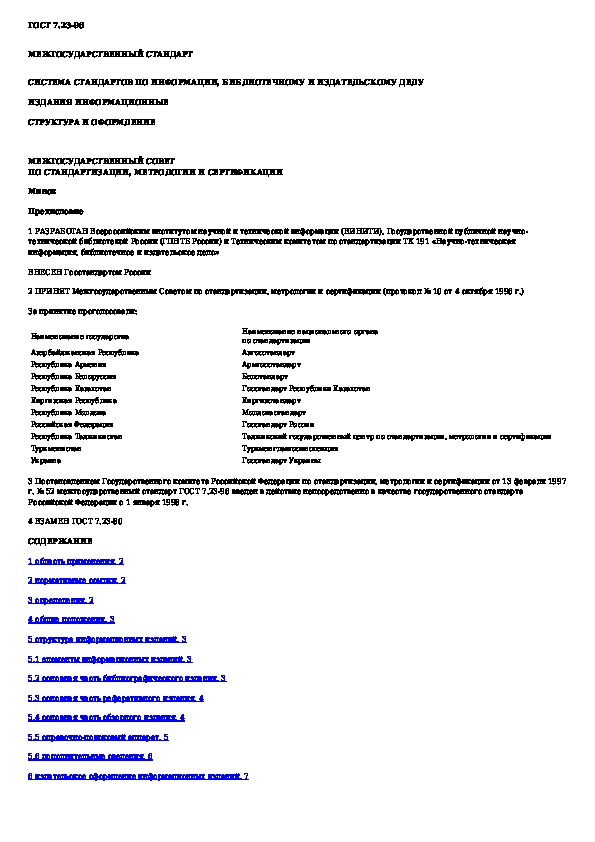 ГОСТ 7.23-96: Система стандартов по информации, библиотечному и издательскому делу. Издания информационные. Структура и оформление