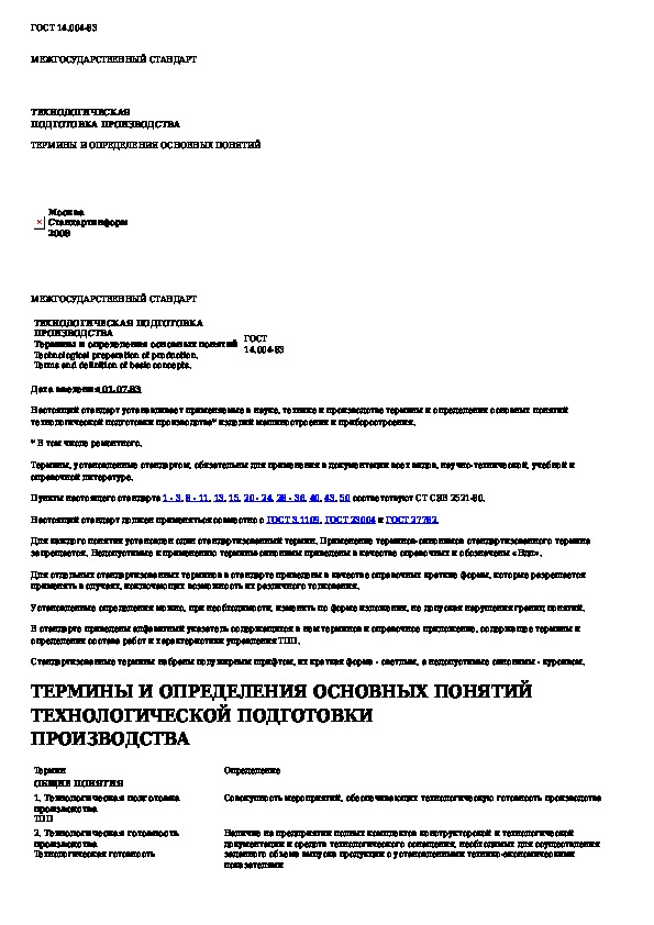 ГОСТ 14.004-83: Технологическая подготовка производства. Термины и определения основных понятий