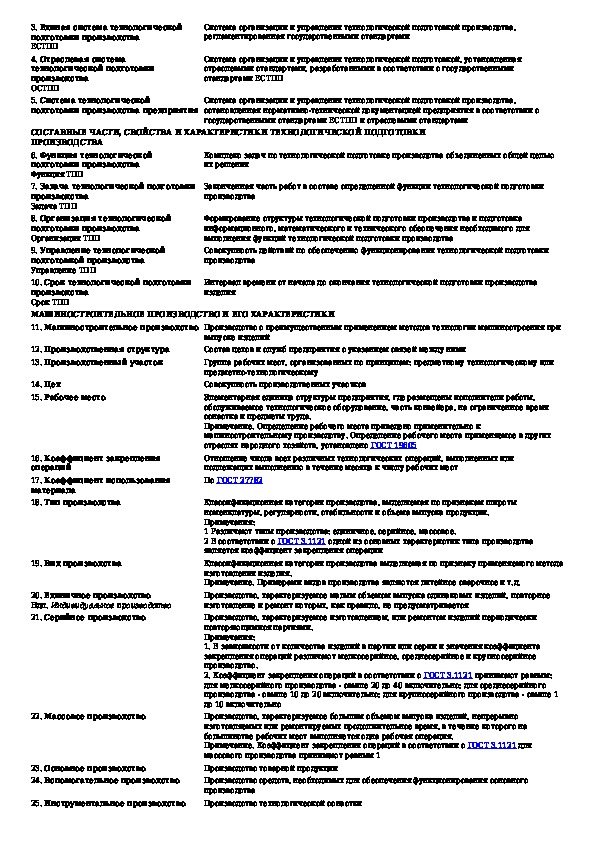 Технологическая подготовка производства. Термины и определения основных понятий