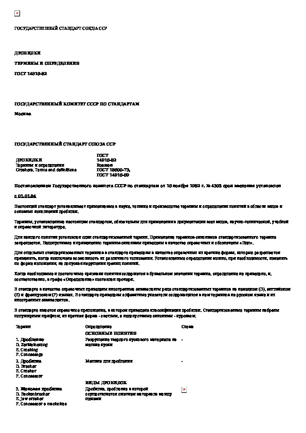 Наша цель состоит в том, чтобы предоставить вам быстрый доступ к содержанию документа Дробилки. Термины и определения.