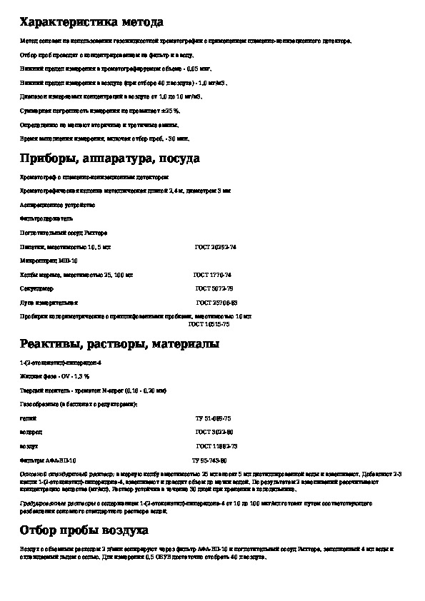 МУК 4.1.0.340-96: Газохроматографическое измерение концентрации 1-(2-этоксиэтил)-пиперидона-4 в воздухе рабочей зоны