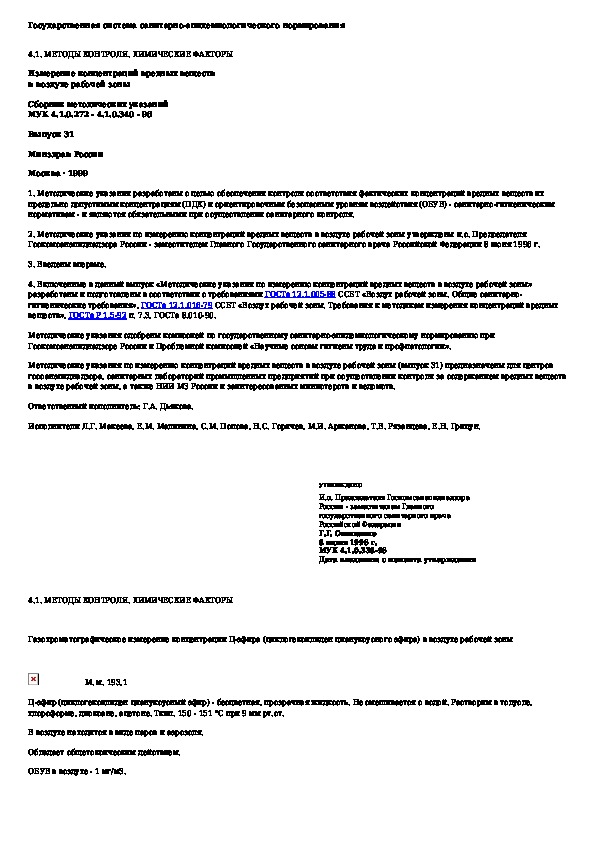МУК 4.1.0.338-96: Газохроматографическое измерение концентрации Ц-эфира (циклогексилиден циануксусного эфира) в воздухе рабочей зоны