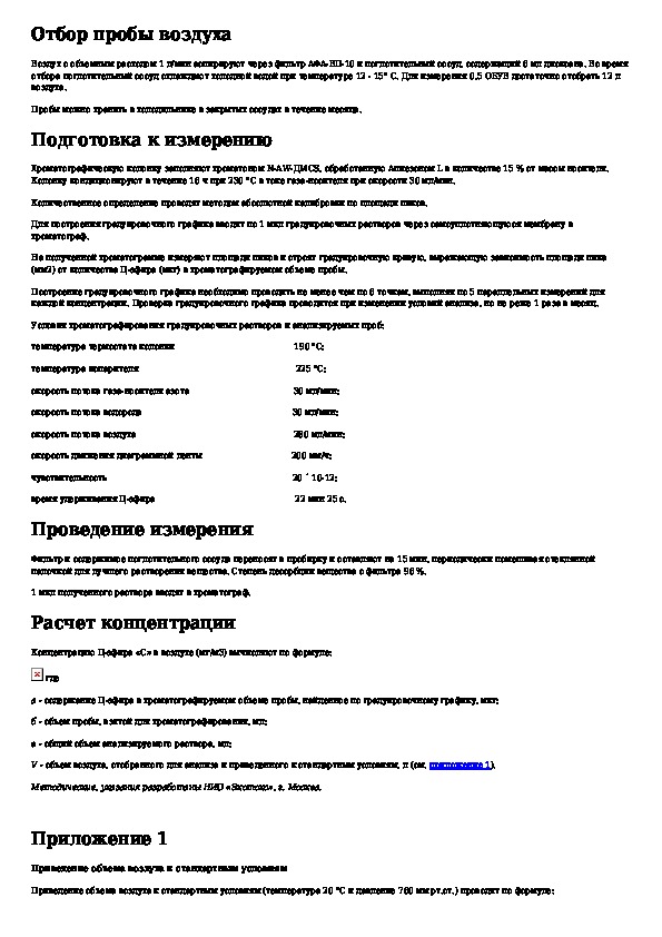 • Загрузка на компьютер - Вы можете также скачать Газохроматографическое измерение концентрации Ц-эфира (циклогексилиден циануксусного эфира) в воздухе рабочей зоны на свой компьютер и сохранить его в файлах.