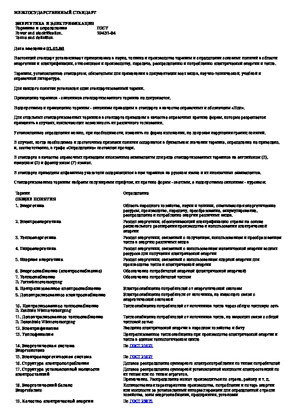 Наша цель состоит в том, чтобы предоставить вам быстрый доступ к содержанию документа Энергетика и электрификация. Термины и определения.