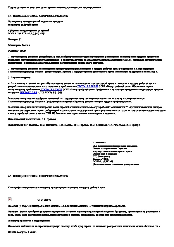 МУК 4.1.0.312-96: Спектрофотометрическое измерение концентрации нозепама в воздухе рабочей зоны