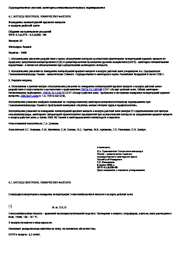 МУК 4.1.0.306-96: Спектрофотометрическое измерение концентрации 2-метоксибензойной кислоты в воздухе рабочей зоны