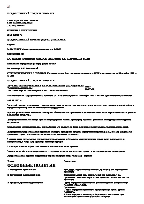 Наша цель состоит в том, чтобы предоставить вам быстрый доступ к содержанию документа Пути водные внутренние и их навигационное оборудование. Термины и определения.