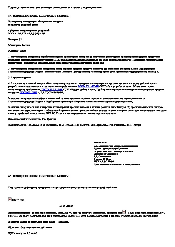МУК 4.1.0.291-96: Газохроматографическое измерение концентрации изоамилсалицилата в воздухе рабочей зоны