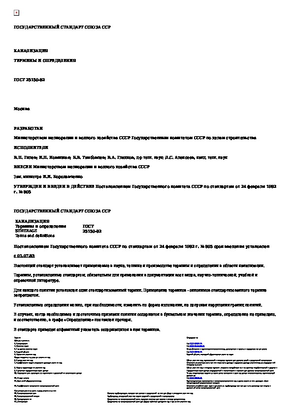 ГОСТ 25150-82: Канализация. Термины и определения