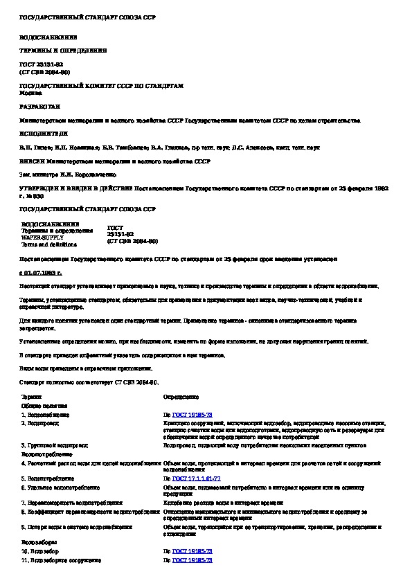 Наша цель состоит в том, чтобы предоставить вам быстрый доступ к содержанию документа Водоснабжение. Термины и определения.