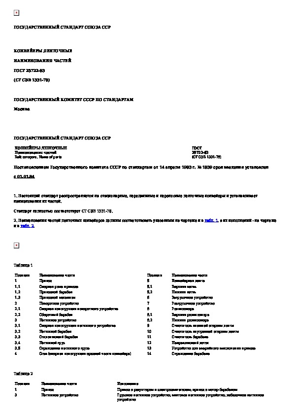 ГОСТ 25722-83: Конвейеры ленточные. Наименования частей