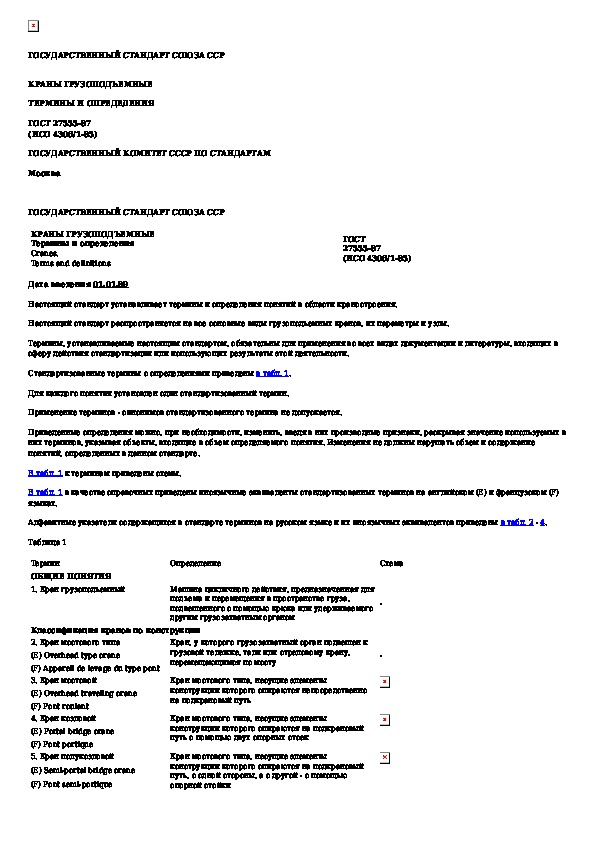 Наша цель состоит в том, чтобы предоставить вам быстрый доступ к содержанию документа Краны грузоподъемные. Термины и определения.