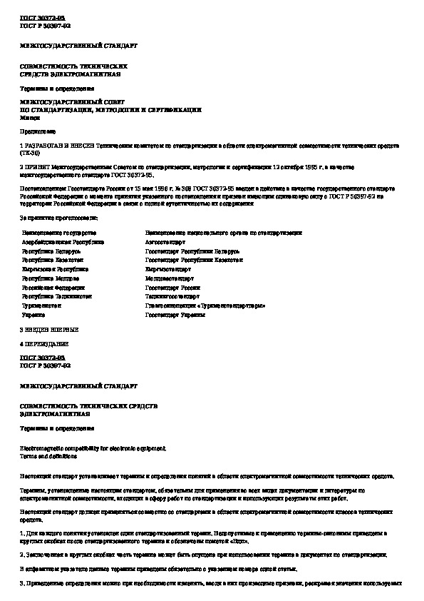 ГОСТ 30372-95: Совместимость технических средств электромагнитная. Термины и определения