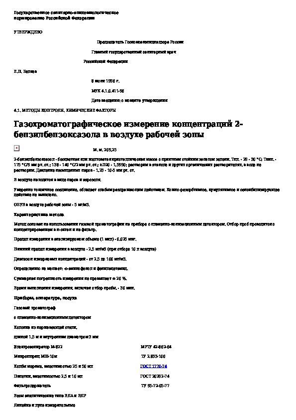 • Просмотр в полноэкранном режиме - легко просмотреть документ Газохроматографическое измерение концентраций 2-бензилбензоксазола в воздухе рабочей зоны (без загрузки его на свой компьютер).