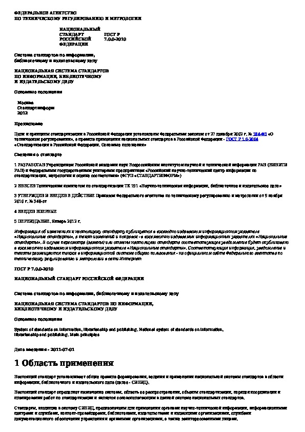 ГОСТ Р 7.0.0-2010: Система стандартов по информации, библиотечному и издательскому делу. Национальная система стандартов по информации, библиотечно