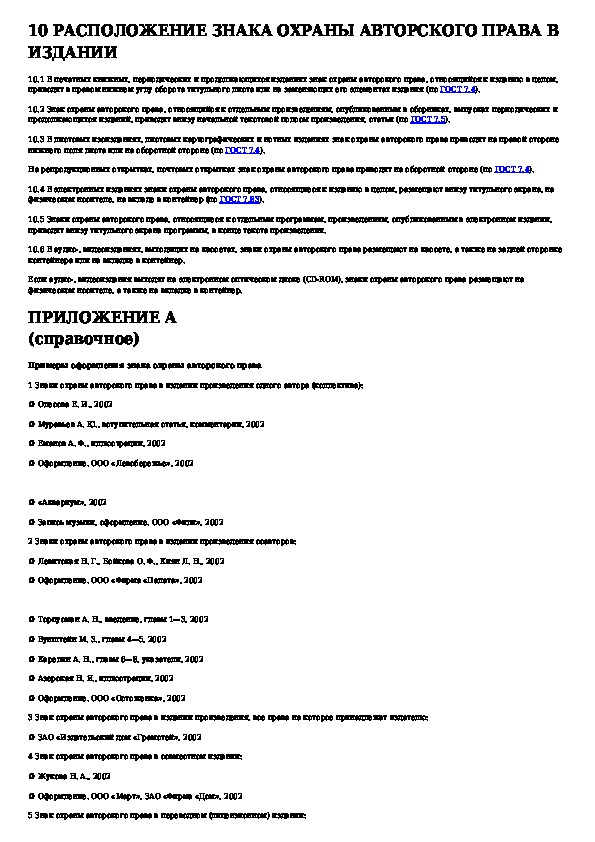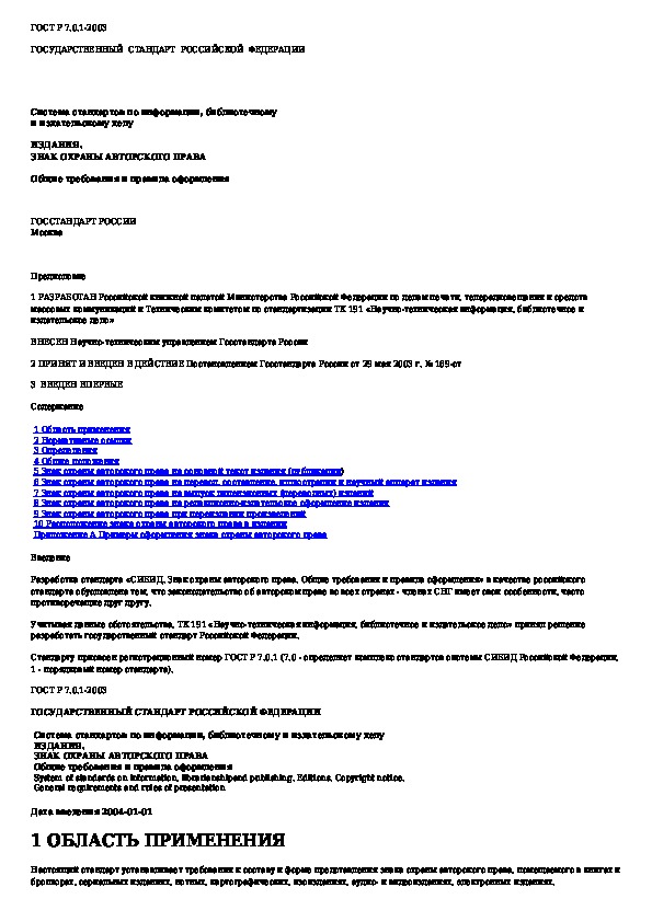 ГОСТ Р 7.0.1-2003: Система стандартов по информации, библиотечному и издательскому делу. Издания. Знак охраны авторского права. Общие требования и пр