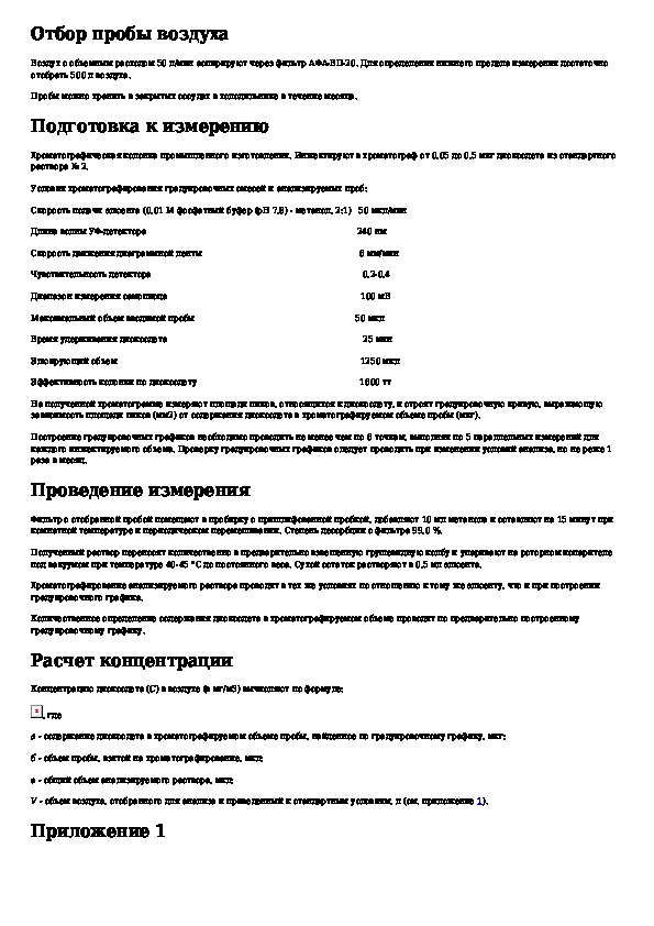 Измерение концентраций диоксодета методом высокоэффективной жидкостной хроматографии в воздухе рабочей зоны