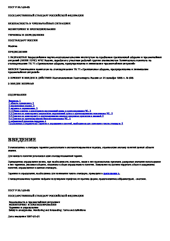 Наша цель состоит в том, чтобы предоставить вам быстрый доступ к содержанию документа Безопасность в чрезвычайных ситуациях. Мониторинг и прогнозирование. Термины и определения.