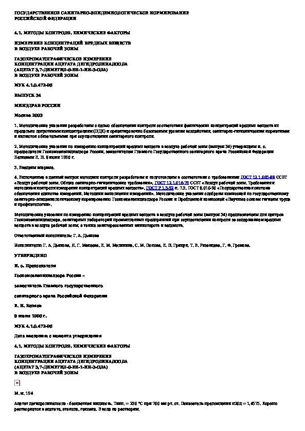 МУК 4.1.0.472-96: Газохроматографическое измерение концентрации ацетата дегидролиналоола (ацетат 3,7-диметил-6-ен-1-ин-3-ола) в воздухе рабочей зоны