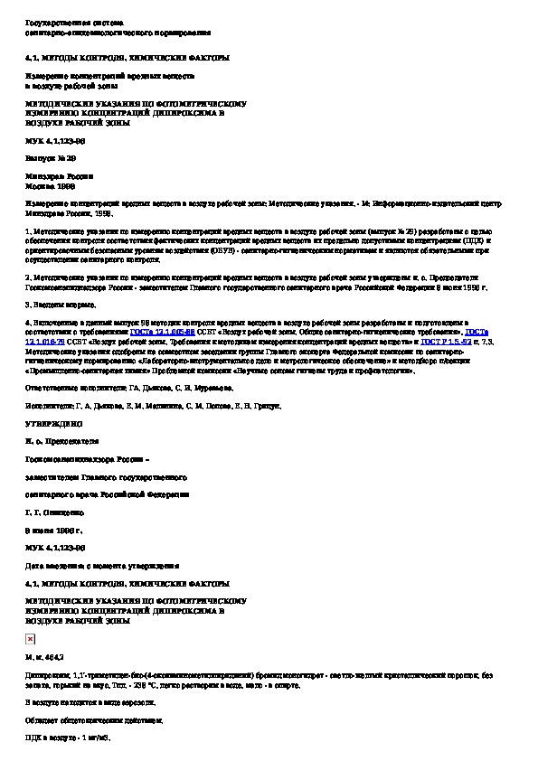 Наша цель состоит в том, чтобы предоставить вам быстрый доступ к содержанию документа Методические указания по фотометрическому измерению концентраций дипироксима в воздухе рабочей зоны.