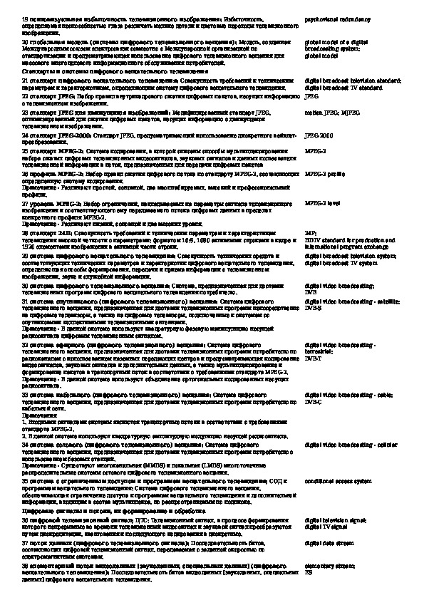 Телевидение вещательное цифровое. Термины и определения