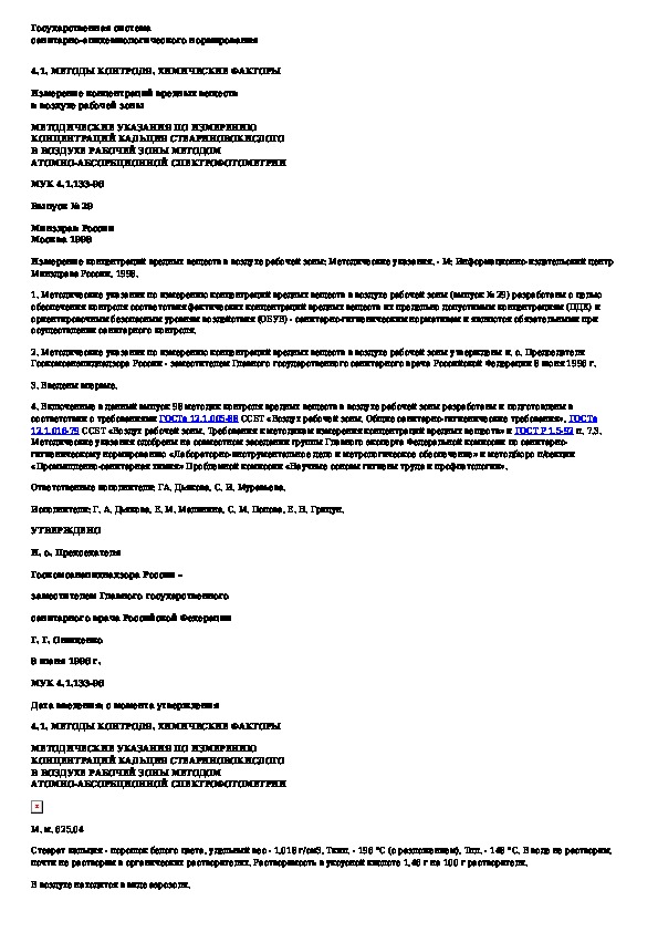 Наша цель состоит в том, чтобы предоставить вам быстрый доступ к содержанию документа Методические указания по измерению концентраций кальция стеариновокислого в воздухе рабочей зоны методом атомно-абсорбционной с.