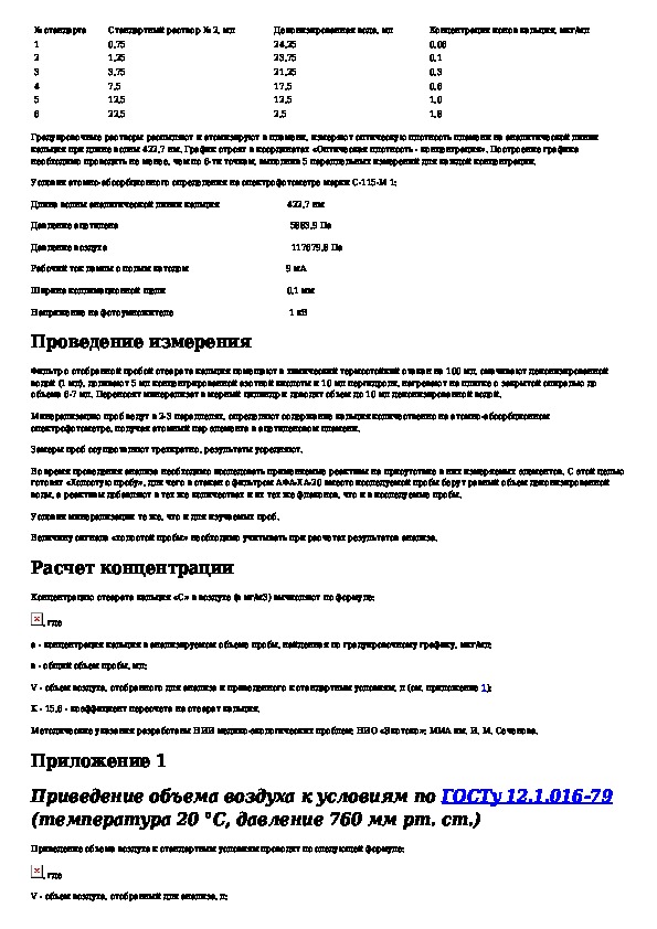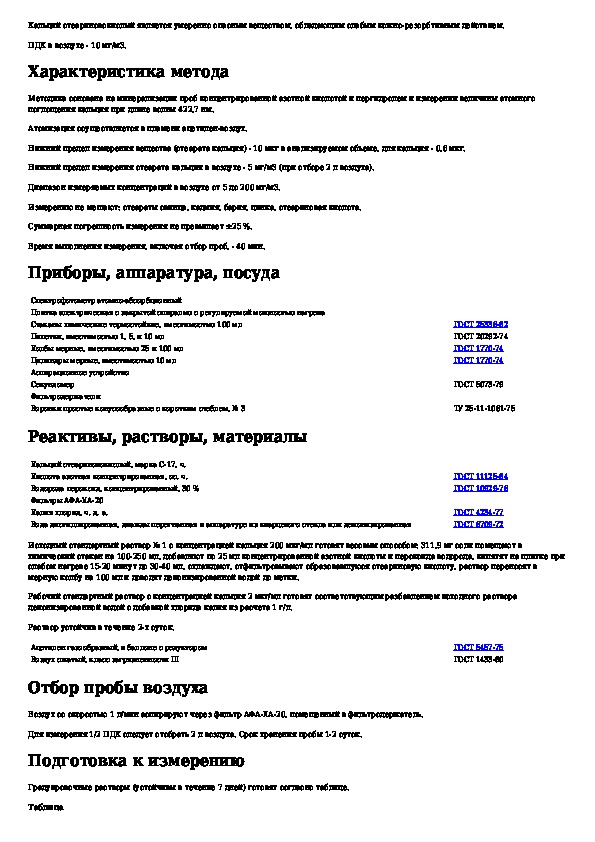 Методические указания по измерению концентраций кальция стеариновокислого в воздухе рабочей зоны методом атомно-абсорбционной с