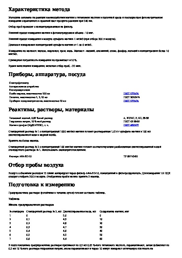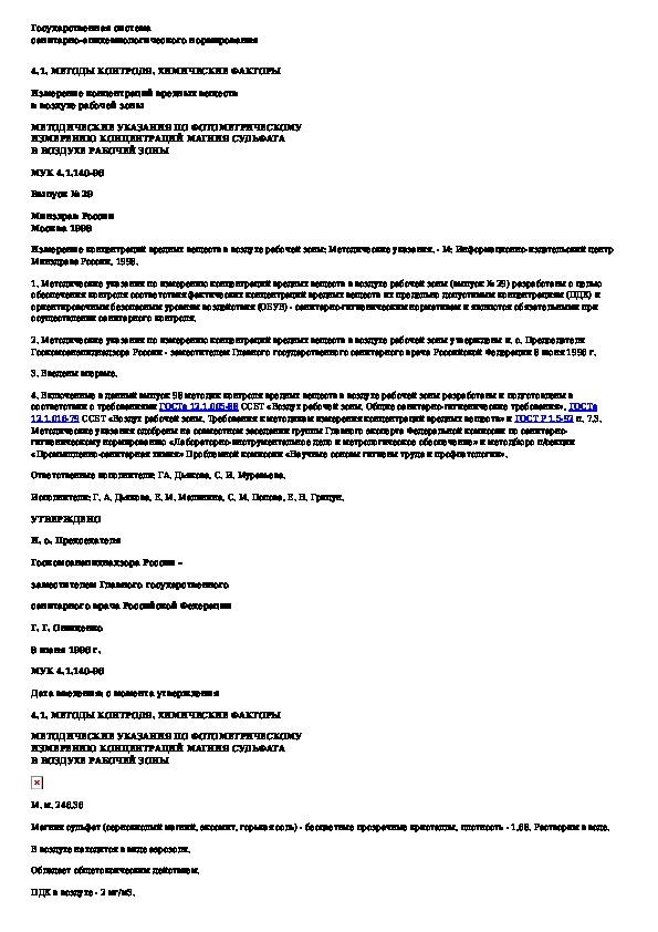 Наша цель состоит в том, чтобы предоставить вам быстрый доступ к содержанию документа Методические указания по фотометрическому измерению концентраций магния сульфата в воздухе рабочей зоны.