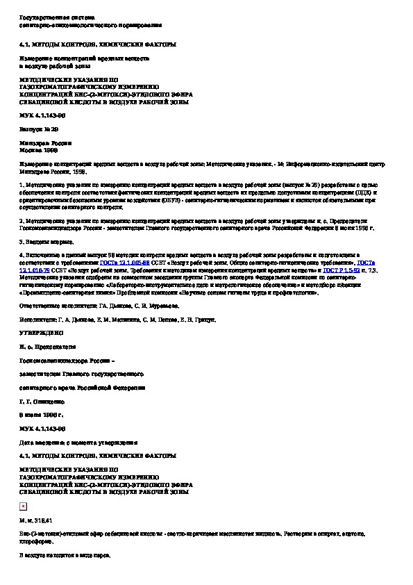 Наша цель состоит в том, чтобы предоставить вам быстрый доступ к содержанию документа Методические указания по газохроматографическому измерению концентраций бис-(2-метокси)-этилового эфира себациновой кислоты в во.