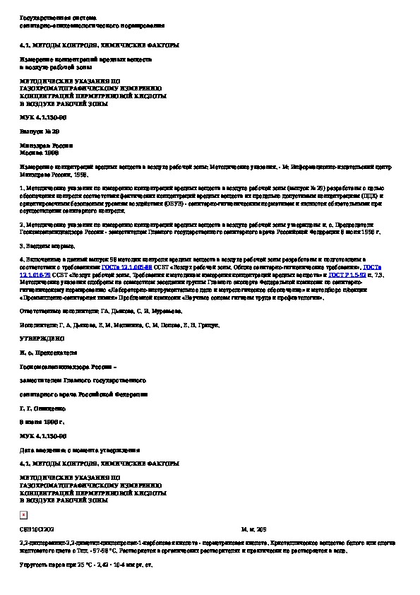 Наша цель состоит в том, чтобы предоставить вам быстрый доступ к содержанию документа Методические указания по газохроматографическому измерению концентраций перметриновой кислоты в воздухе рабочей зоны.