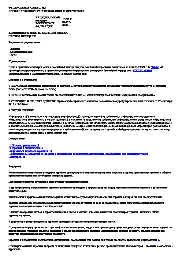 Наша цель состоит в том, чтобы предоставить вам быстрый доступ к содержанию документа Компоненты волоконно-оптических систем передачи. Термины и определения.