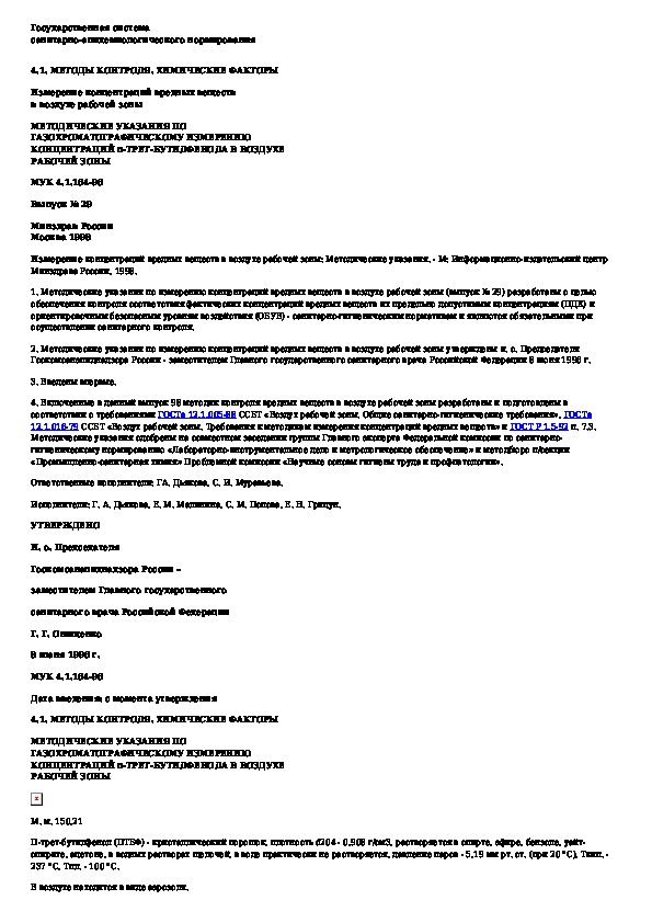 • Просмотр в полноэкранном режиме - легко просмотреть документ Методические указания по газохроматографическому измерению концентраций п-трет-бутилфенола в воздухе рабочей зоны (без загрузки его на свой компьютер).