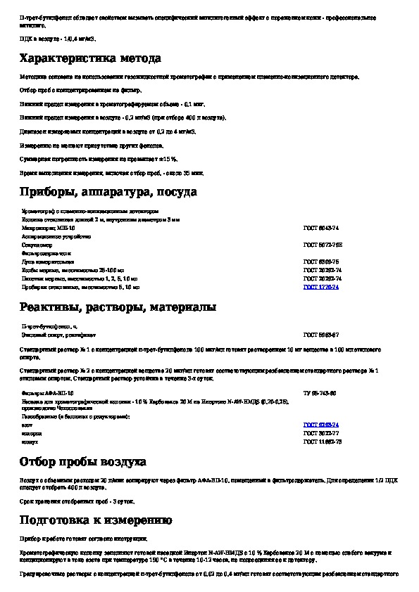 • Загрузка на компьютер - Вы можете также скачать Методические указания по газохроматографическому измерению концентраций п-трет-бутилфенола в воздухе рабочей зоны на свой компьютер и сохранить его в файлах.