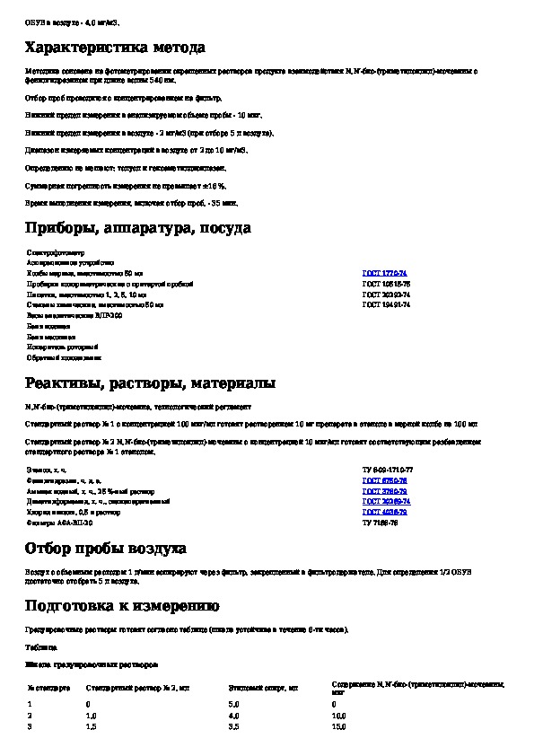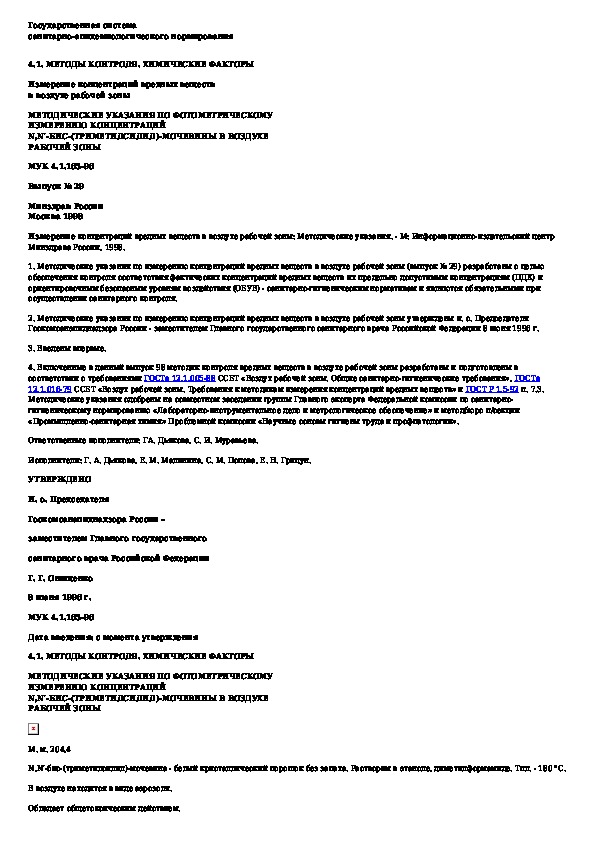 МУК 4.1.165-96: Методические указания по фотометрическому измерению концентраций N,N'-бис-(триметилсилил)-мочевины в воздухе рабочей зоны